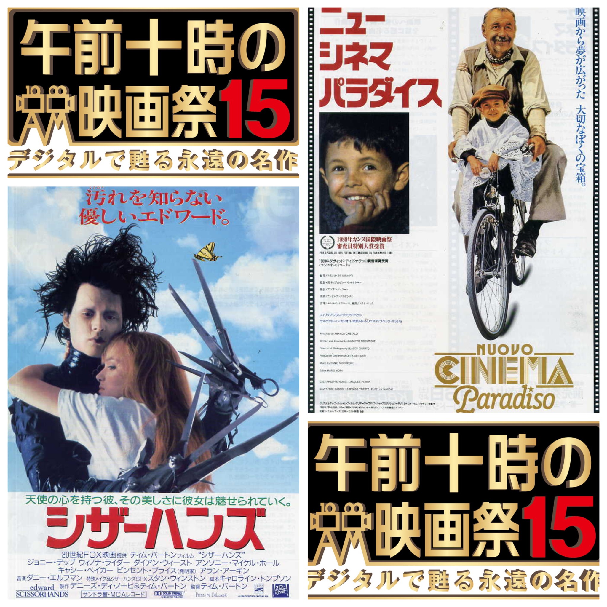 「午前十時の映画祭15」、12月5日(金)から「あなたのことを忘れない」として「シザーハンズ」、「ニュー・シネマ・パラダイス」を上映。