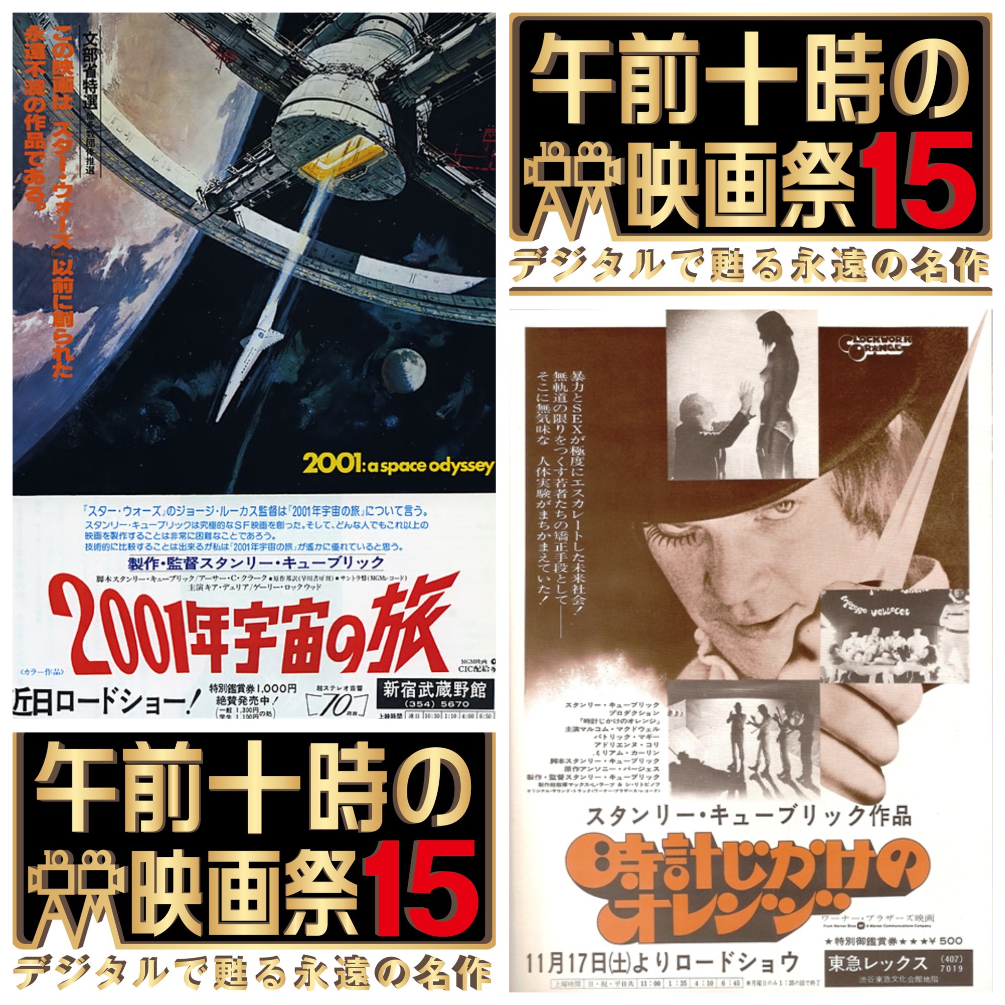 「午前十時の映画祭15」、1月30日(金)から「キューブリックが見せてくれた未来」として「2001年宇宙の旅」、「時計じかけのオレンジ」を上映。